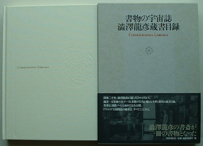 国書刊行会の編集長礒崎純一さんが長きに亙り日曜日を返上して鎌倉の澁澤邸に通つて精査なすつた澁澤さんの藏書目録が遂に完成、昨秋『書物の宇宙誌 澁澤龍彦蔵書目録』と題されて刊行されました。登載書目は1萬1千から2千に及ぶさうです。申せば全巻これ書物のリストにすぎないのですが、澁澤さんの文業を念頭におきつゝ目で書名を追つてゆくと樣々な連想・妄想・追想に驅られ、思はずも刻を過してしまふのです。これはもう、一種の〈至福の時間〉と申してもよいでせう。そして、恐らく澁澤さんでなければ成立しない書物ですね。巻末に創作ノートの影印、龍子夫人へのインタビュー「澁澤龍彦と本」、松山俊太郎・巖谷國士の對談「澁澤龍彦の書物」、東雅夫・礒崎純一の對談「書物の宇宙誌・解題」、索引が附されてゐます。白のバクラムを用ゐた裝幀は如何にも澁澤さんに相應はしく、美しき書物に仕上がつてゐます。高價にもかゝはらず賣行好調の由、礒崎さん、御精進の甲斐がありましたね。
